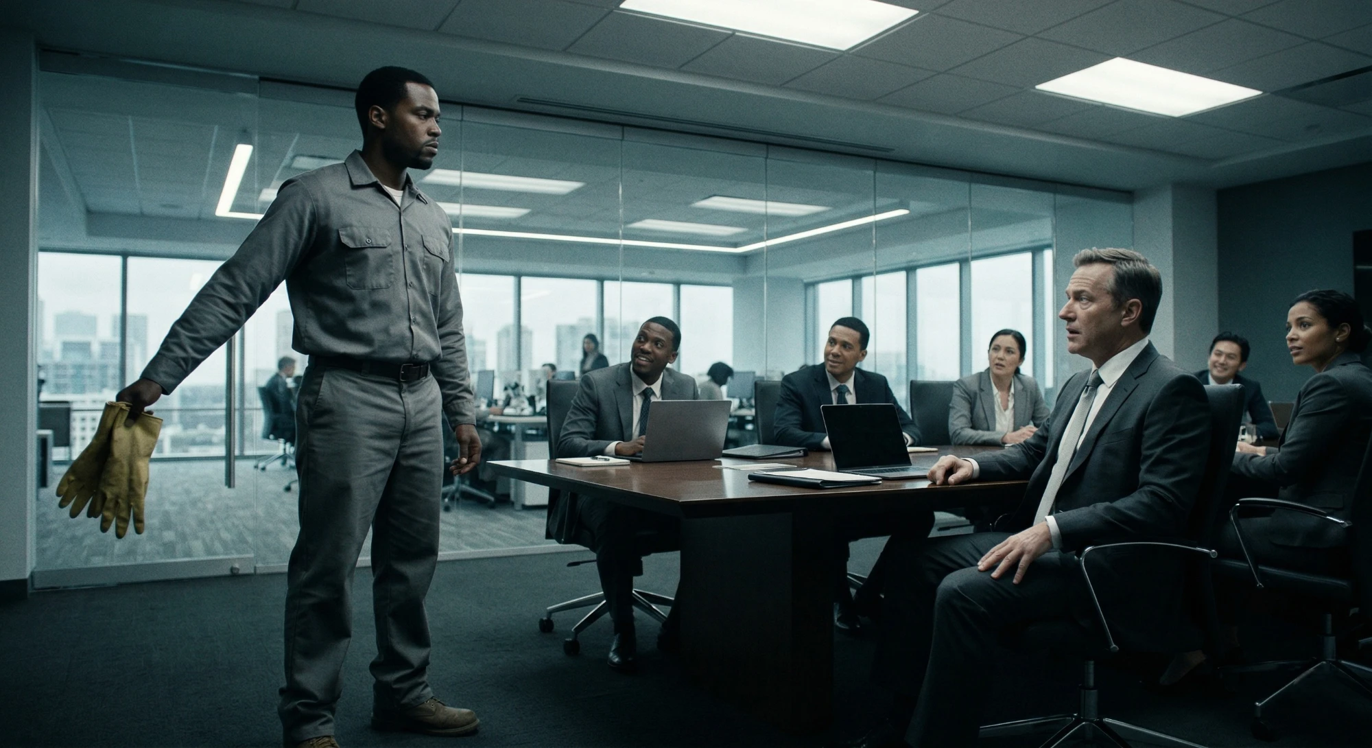 The day Daniel Carter walked back into NovaTech Solutions, he was pushing a cleaning cart. Nobody recognized him. Not the receptionist who swiped him through security. Not the junior engineers…